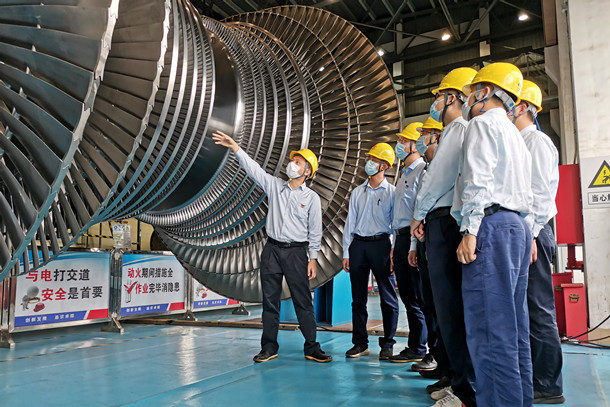中國電力網(wǎng)訊 10月25日,國家能源集團(tuán)福建泉州熱電公司第7期運(yùn)行“檢修課堂”如期開講,10名新員工在機(jī)組長帶領(lǐng)下走進(jìn)檢修現(xiàn)場,學(xué)習(xí)主機(jī)設(shè)備原理構(gòu)造知識。