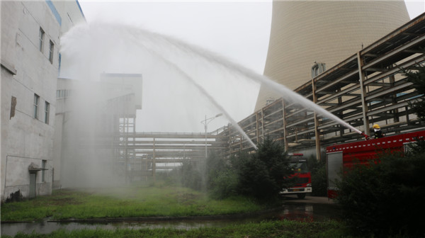 9時,各參演單位集結(jié)完畢,副廠長宣布“大唐長山熱電廠輸煤系統(tǒng)火災(zāi)演練”開始。本次演練假想為燃運分場運行人員巡視檢查中發(fā)現(xiàn)1號機組輸煤4段尾部皮帶積粉燃燒,輸煤皮帶冒煙著火,運行人員發(fā)現(xiàn)火情后立即匯報集控班長并就地使用滅火器進行撲救,集控班長接到報告后立即撥打火警電話告知火災(zāi)地點,同時報告值長和燃運分場主任,并組織集控值班員趕往火災(zāi)地點進行撲救。值長立即向演練總指揮報告,并按要求做好機組調(diào)整工作??傊笓]下達啟動輸煤皮帶火災(zāi)應(yīng)急預(yù)案,成立現(xiàn)場指揮部,全力撲救火情,保障人身安全和機組穩(wěn)定運行。值長迅速通過生產(chǎn)溝通群向各應(yīng)急組發(fā)布應(yīng)急預(yù)案啟動命令,告知火情信息。廠消防隊和長山化廠消防車到達火災(zāi)現(xiàn)場,消防戰(zhàn)士開始撲救火災(zāi),9時11分火情得到控制,廠消防隊隊長報告輸煤皮帶明火已經(jīng)撲滅,消防人員正在清理現(xiàn)場,防止死灰復(fù)燃,至此演練結(jié)束。李云龍宣布應(yīng)急響應(yīng)結(jié)束,關(guān)閉應(yīng)急預(yù)案。