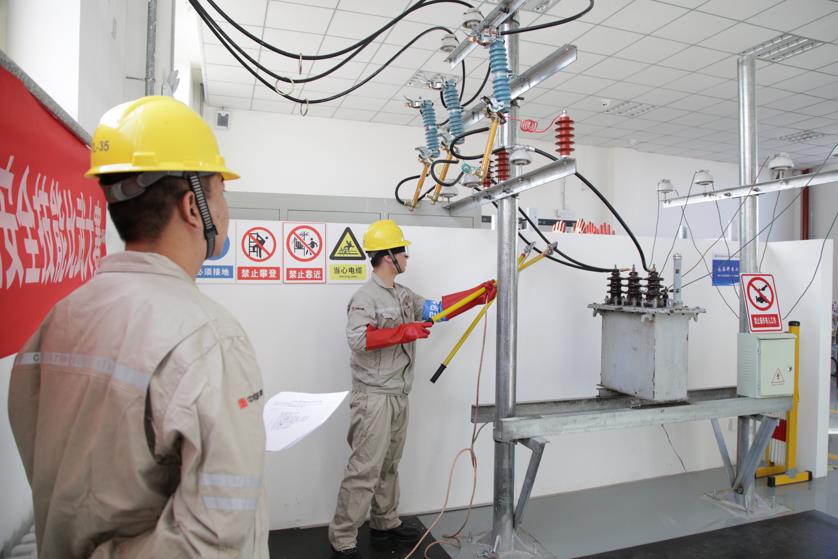 第一項(xiàng)是停送電倒閘操作,評(píng)分方式為裁判組打分。參賽選手兩人一組,一人填寫停電操作票、另一人填寫送電操作票,分別擔(dān)任操作人、監(jiān)護(hù)人;安全防護(hù)用品、安全工器具設(shè)置了過期標(biāo)簽,檢驗(yàn)參賽選手是否能正確使用;實(shí)際操作過程中的違章作為扣分項(xiàng)。