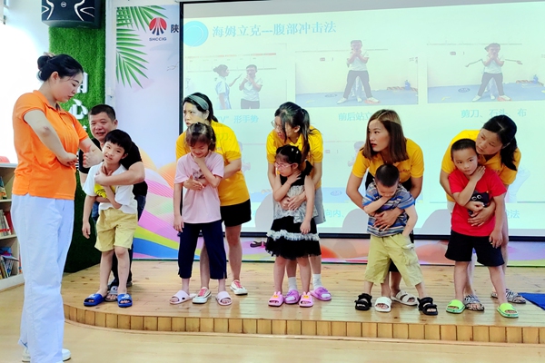 “我來(lái)試一試。”筱筱在醫(yī)生的一番示范后,積極上臺(tái)學(xué)習(xí)被氣道異物梗阻的自救方法。“醫(yī)生阿姨,我也要試一試。”孩子們躍躍欲試。“我家娃回來(lái)一直在唱防溺水兒歌,知道下水游泳需要大人陪伴。”一場(chǎng)專業(yè)有趣的安全知識(shí)互動(dòng)課一下抓住了孩子的心。