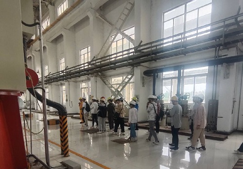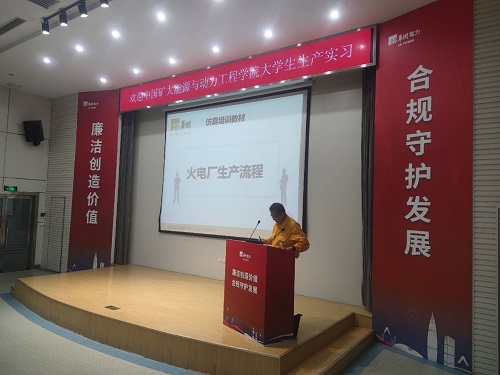 徐州公司發電部專工為能動學院學生進行了發電廠生產流程介紹,并一同前往百萬機組汽機房、鍋爐房、集控室等地進行現場生產實習。
