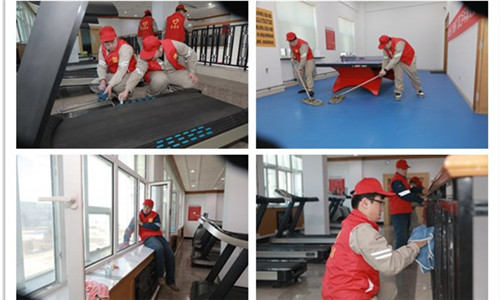 青年志愿者統(tǒng)一身穿紅色志愿者馬甲,發(fā)揚(yáng)不怕臟不怕累的精神,拿起掃把、拖布、抹布等工具,對(duì)活動(dòng)中心的臺(tái)球室、乒乓球室、閱覽室、健身區(qū)域進(jìn)行衛(wèi)生整治,做到環(huán)境衛(wèi)生清理不留死角,讓其變得更加干凈、整潔,部分志愿者還對(duì)健身設(shè)備添加潤(rùn)滑油脂進(jìn)行器材保養(yǎng),增加使用壽命?;顒?dòng)現(xiàn)場(chǎng)處處充斥著志愿者們忙碌的身影,大家分工協(xié)作,干勁十足,通過(guò)共同努力,活動(dòng)中心環(huán)境煥然一新。