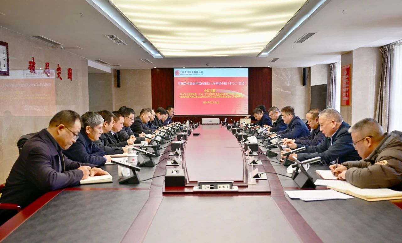 12月16日,大唐貴州發(fā)電公司黨委召開黨的建設(shè)工作領(lǐng)導(dǎo)小組(擴(kuò)大)會議,深入學(xué)習(xí)貫徹習(xí)近平總書記關(guān)于黨的建設(shè)的重要思想,全面貫徹黨的二十屆三中全會精神,認(rèn)真落實(shí)集團(tuán)公司黨建工作部署要求,系統(tǒng)總結(jié)2024年黨的建設(shè)工作成果成效,研究部署2025年黨建重點(diǎn)任務(wù),團(tuán)結(jié)帶領(lǐng)系統(tǒng)黨組織、廣大黨員,以更高的政治站位、更嚴(yán)的工作要求、更實(shí)的落實(shí)舉措,高標(biāo)準(zhǔn)高質(zhì)量推動黨建工作再上新臺階,為貴州公司高質(zhì)量完成“十四五”規(guī)劃目標(biāo)任務(wù)和實(shí)現(xiàn)“十五五”良好開局提供堅(jiān)強(qiáng)政治保證。貴州公司黨委書記、董事長、黨的建設(shè)工作領(lǐng)導(dǎo)小組組長李奕主持會議并講話。黨的建設(shè)工作領(lǐng)導(dǎo)小組成員冉怒吟、方世杰、曹云、王秀江參加會議并結(jié)合分管工作提出要求。