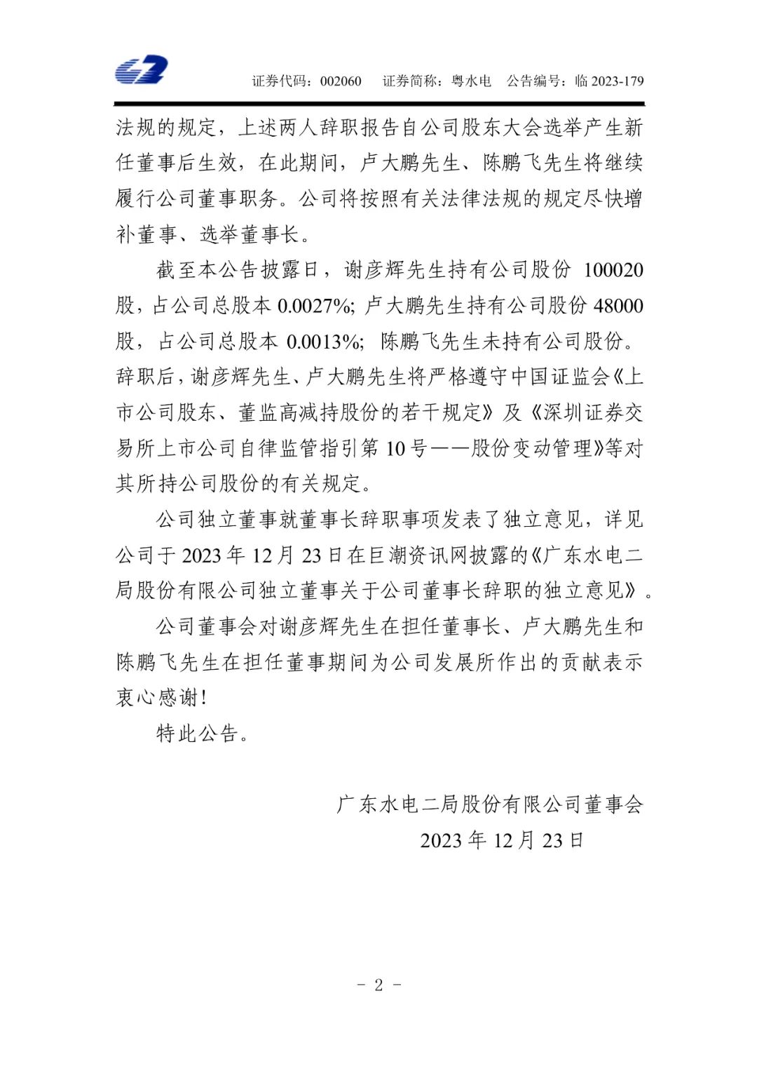 謝彥輝辭去廣東水電二局股份有限公司董事長(zhǎng)等職務(wù)。