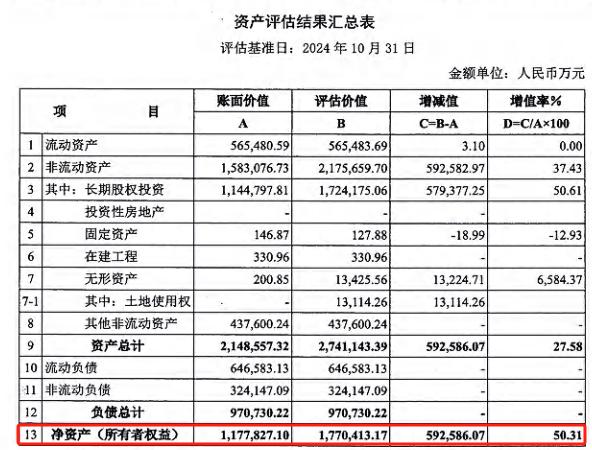 根據(jù)評估報告披露,陜煤電力集團(tuán)凈資產(chǎn)評估值177.04億元,評估增值59億元,增值率50.31%。