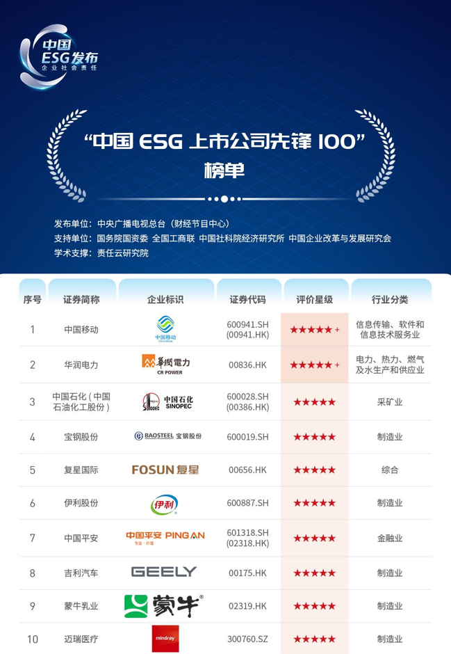 6月13日,“中國ESG(企業(yè)社會責(zé)任)發(fā)布”在北京梅地亞中心正式舉行。本次活動由中央廣播電視總臺財經(jīng)節(jié)目中心聯(lián)合國務(wù)院國資委、全國工商聯(lián)、中國社科院經(jīng)濟(jì)研究所、中國企業(yè)改革與發(fā)展研究會等權(quán)威機(jī)構(gòu)部門推出,責(zé)任云研究院作為項(xiàng)目唯一學(xué)術(shù)支撐單位。會上發(fā)布了《年度ESG行動方案》,其中包括“中國ESG上市公司先鋒100”榜單,華潤電力在855家參與評級的上市公司中位列第二。