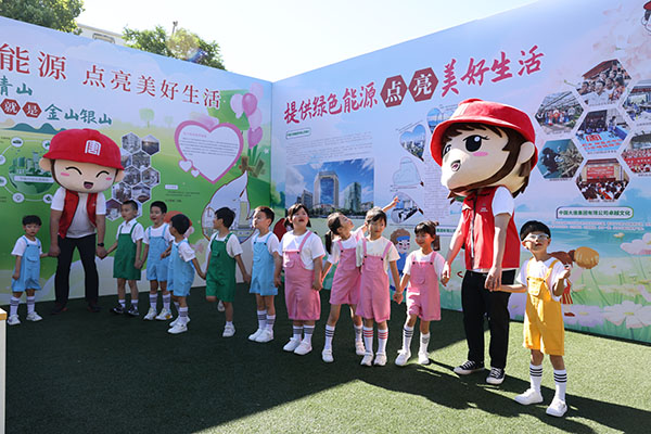 在展示區(qū),大唐環(huán)境設(shè)置了企業(yè)形象展臺(tái),邀請(qǐng)華奧學(xué)校全體師生和學(xué)生家長(zhǎng)參觀以“綠水青山就是金山銀山”為主題的科普展板。