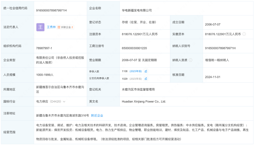 華電新疆發(fā)電有限公司成立于2006年7月,經(jīng)營(yíng)范圍含電力設(shè)備安裝、調(diào)試、維護(hù),電力及相關(guān)技術(shù)的科研開發(fā),技術(shù)咨詢等,由中國(guó)華電集團(tuán)有限公司全資持股。