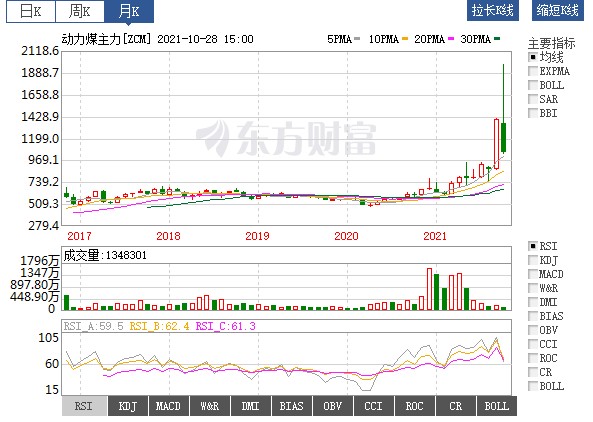 由K線圖上可知,煤價在今年4月突破了長達(dá)若干年的大箱體,開始了瘋狂的上升之旅。從月線上看,如今一根長上影線避雷針,從技術(shù)上來講,死翹翹了。