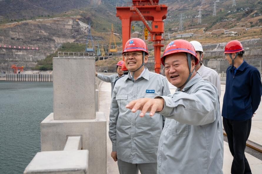 在白鶴灘水電站調(diào)研期間,韓君一行先后前往白鶴灘水電站右岸地下廠房、壩后C3平臺、大壩壩頂、集控樓等重點部位察看,詳細(xì)了解后續(xù)工程建設(shè)和機組運行管理情況。在聽取相關(guān)工作匯報后,韓君強調(diào),當(dāng)前正值迎峰度冬關(guān)鍵時期,白鶴灘電廠要確保機組安全生產(chǎn),服從電網(wǎng)統(tǒng)一調(diào)度,全力做好能源保供工作。要嚴(yán)格按照三峽集團白鶴灘水電站工程竣工驗收的節(jié)點目標(biāo)要求,全力推進竣工驗收各項工作,精心完成后續(xù)配套工程建設(shè),實現(xiàn)白鶴灘水電站精品工程完美收官。