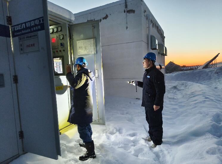 在西北部地區(qū),新疆伊犁地區(qū)日前遭遇連續(xù)降雪,華能伊犁光伏電站地處山區(qū),現(xiàn)場積雪最深處達(dá)50公分。場站立即啟動(dòng)防寒防凍應(yīng)急預(yù)案,重點(diǎn)對匯流箱、箱變、逆變器、光伏板凝凍情況等進(jìn)行仔細(xì)檢查,增加巡檢次數(shù)和動(dòng)態(tài)跟蹤;及時(shí)清除組件積雪,加強(qiáng)應(yīng)急值班管理,持續(xù)做好運(yùn)行監(jiān)控分析和重點(diǎn)設(shè)備專項(xiàng)檢查工作,確保電力生產(chǎn)設(shè)備始終處于最佳運(yùn)行狀態(tài),保障關(guān)鍵時(shí)刻設(shè)備安全穩(wěn)定供電。