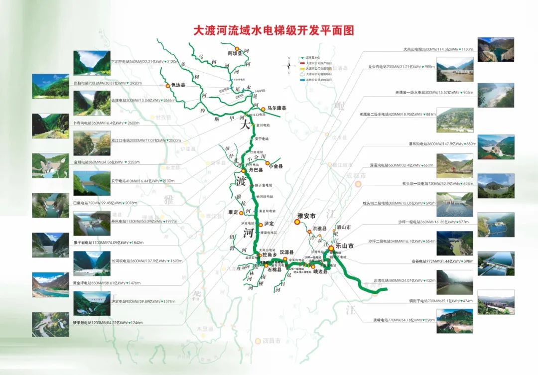 大渡河流域是國家能源集團(tuán)水電開發(fā)主要區(qū)域,在干流投產(chǎn)裝機(jī)1133.8萬千瓦,投產(chǎn)水電總裝機(jī)占四川省水電統(tǒng)調(diào)裝機(jī)的四分之一,在建水電裝機(jī)352萬千瓦,是清潔能源開發(fā)重要基地。