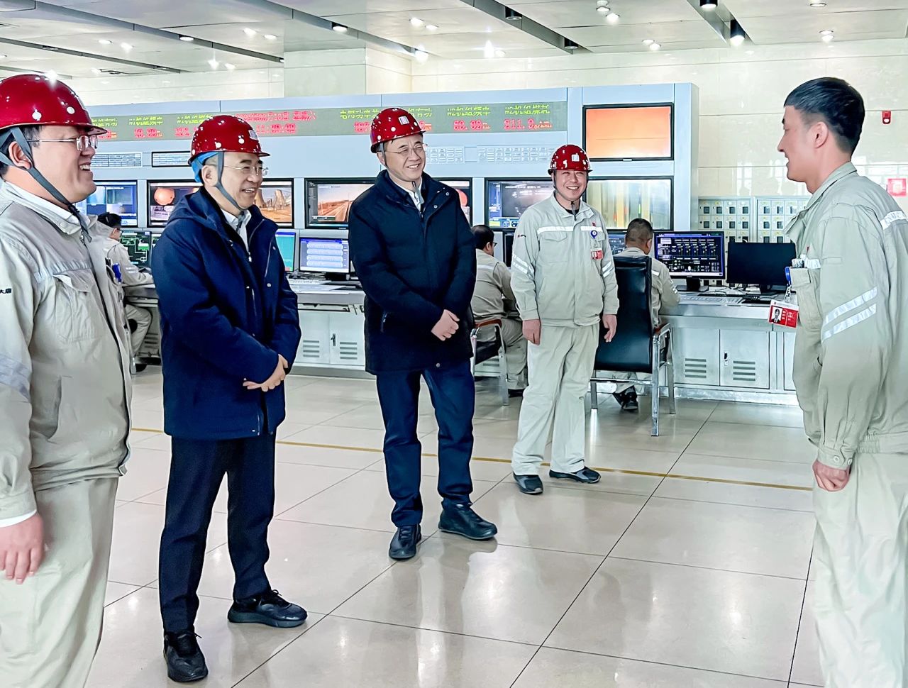 隨后,鄒磊來到集控運(yùn)行值班室,向堅(jiān)守崗位的值班員表示感謝,并送上慰問品和節(jié)日的祝福。在聽取了當(dāng)值值長的匯報(bào)后,鄒磊關(guān)心地詢問當(dāng)值值班人員情況、通勤交通情況,希望大家繼續(xù)發(fā)揚(yáng)優(yōu)良傳統(tǒng),精心組織,切實(shí)做好春節(jié)期間電力和熱能保障工作,確保節(jié)日期間安全環(huán)保局面穩(wěn)定。