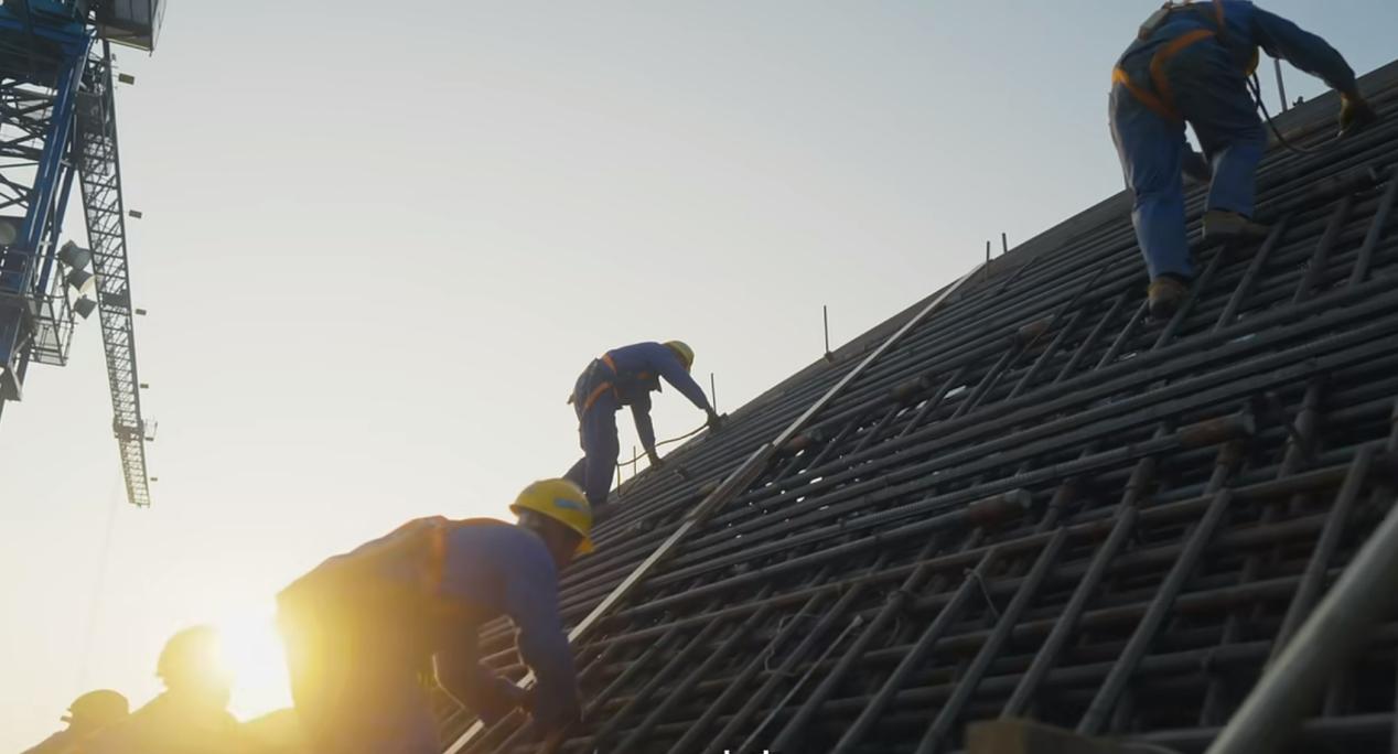 龍年春節(jié)期間,太平嶺核電站1號機組完成外穹頂驗收工作,進入建設關鍵期。8000多名建設者堅守現(xiàn)場,以熱火朝天的干勁投入工作。在面積約5個籃球場大小的穹頂上,數(shù)十名施工人員像“蜘蛛俠”一樣,趴在機組的最高點“敲敲打打”,對已經(jīng)完成安裝的穹頂鋼筋進行檢查驗收,干著以毫米為單位的精細活。