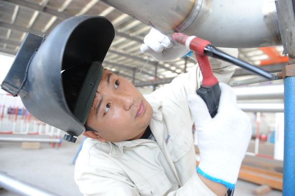 中核集團(tuán)全國(guó)勞模、大國(guó)工匠、核級(jí)焊工未曉朋在進(jìn)行焊接任務(wù)