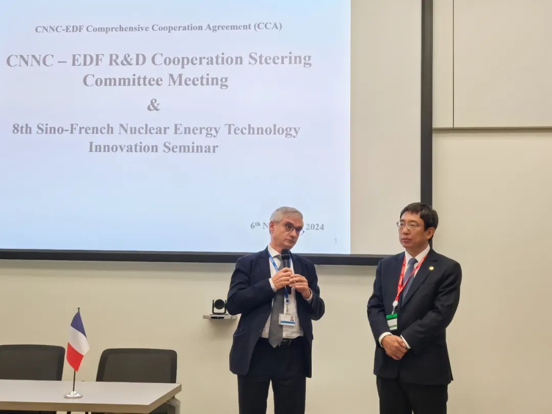 11月6日,第八屆中法核能技術(shù)創(chuàng)新研討會(huì)暨中核集團(tuán)-法國(guó)電力集團(tuán)全面合作協(xié)議(CCA)研發(fā)指導(dǎo)委員會(huì)在巴黎成功召開,中核集團(tuán)副總經(jīng)理辛鋒,法國(guó)電力集團(tuán)(EDF)高級(jí)執(zhí)行副總裁、首席技術(shù)官、研發(fā)部總裁Bernard SALHA出席會(huì)議并致辭。