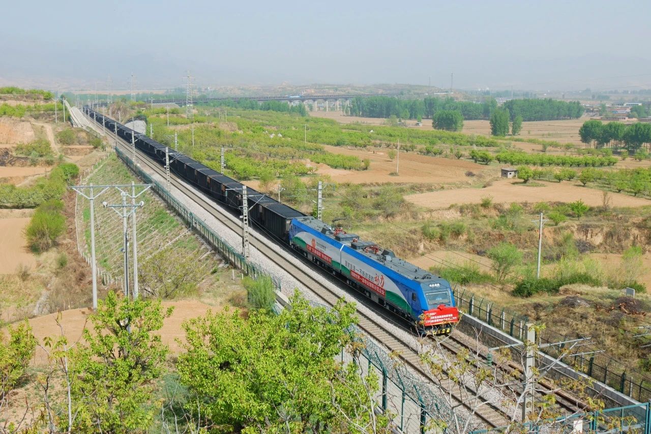 三萬噸重載試驗(yàn)列車行駛在朔黃鐵路線