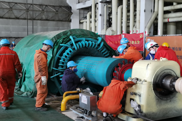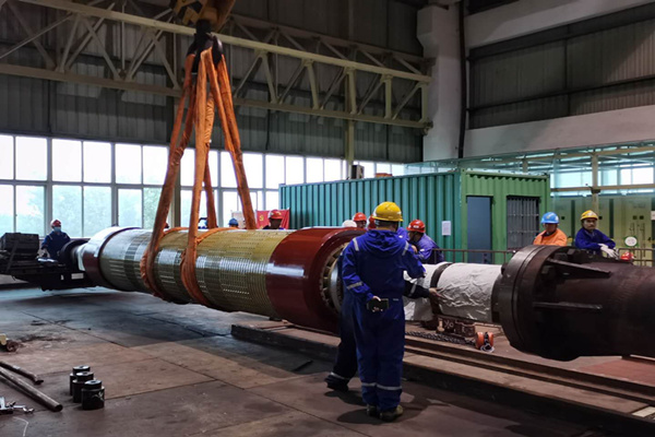 下午14時10分,隨著起重指揮人員的一聲哨響,發(fā)電機抽轉子工作正式開始,抽出期間,各專業(yè)人員分工有序,密切配合,時刻注意轉子與定子的間隙,及時調整轉子的移出量和中心位置,每一步都做到精益求精。整個抽出過程中,公司副總經(jīng)理張旭耀攜各部門負責人、專工現(xiàn)場監(jiān)督、指導,隨時協(xié)調工作中可能出現(xiàn)的問題,為抽轉子作業(yè)的順利進行,提供了可靠保障。