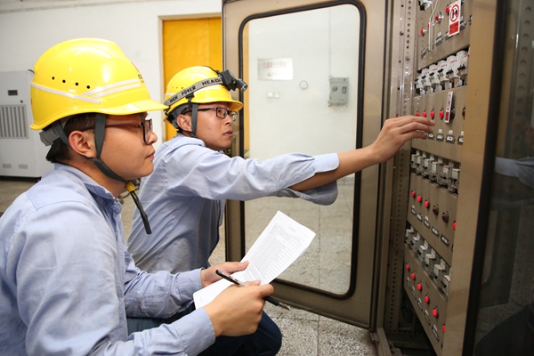 集控室里,還活躍著一批近幾年新進廠的集控小年輕。今年剛入廠的新員工肖煜亮放棄了假日,正在向師傅請教問題,對他來說假日也是他學習的好時光。2017年進廠的張濤和2018年進廠的龔家龍則跑到了380伏配電室,嚴格按照唱票復誦制,熟練的進行電氣停電操作。即便是在黃金周,他們也和前輩們一樣,不愿休息一天,只為盡心盡力保機組安全。