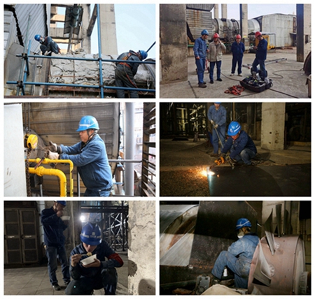 1月1日一上班沒多久,該公司熱機(jī)二班人員就接到了一個(gè)“大工程”——搶修1號(hào)爐B引風(fēng)機(jī)動(dòng)葉。引風(fēng)機(jī)作為風(fēng)煙系統(tǒng)的重要設(shè)備,其動(dòng)葉不能正常操作將直接影響到機(jī)組的高效穩(wěn)定運(yùn)行。盡管空氣中充斥著難聞的硫化物味道,但熱機(jī)二班搶修人員毫不畏懼,加班加點(diǎn),攻堅(jiān)克難,在起重人員、焊工人員等的協(xié)助下,通過(guò)齊心協(xié)力吊裝大鋼板阻斷返回的煙氣,保證人員安全作業(yè),于次日凌晨4時(shí)多完成B引風(fēng)機(jī)動(dòng)葉搶修。為了節(jié)省時(shí)間,搶修人員中飯和晚飯都是在現(xiàn)場(chǎng)或站著、或蹲著吃盒飯解決。期間,該公司黨委委員、副總經(jīng)理劉陸軍和生產(chǎn)各級(jí)管理人員多次到現(xiàn)場(chǎng)監(jiān)督指導(dǎo),確?,F(xiàn)場(chǎng)作業(yè)安全。