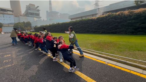 隨著研學(xué)活動(dòng)接近尾聲,南熱電廠的叔叔們與小朋友們展開(kāi)了一場(chǎng)趣味拔河比賽。比賽現(xiàn)場(chǎng),氣氛熱烈而歡快,小朋友們喊著稚嫩卻響亮的口號(hào),小臉憋得通紅,奮力往后拉拽。南熱電廠的叔叔們也不敢有絲毫懈怠,他們巧妙地控制著力道,既給予孩子們對(duì)抗的體驗(yàn),又確保比賽在安全有序的氛圍中進(jìn)行。老師和其他工作人員則組成了熱情的啦啦隊(duì),加油聲、助威聲此起彼伏,歡聲笑語(yǔ)回蕩在整個(gè)場(chǎng)地,大家共同度過(guò)了一段美好的童趣時(shí)光。
