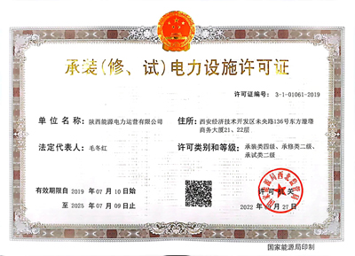 陜投電力運(yùn)營《承裝(修、試)電力設(shè)施許可證》升級為二級資質(zhì)