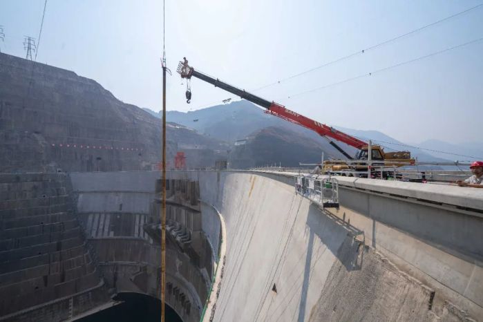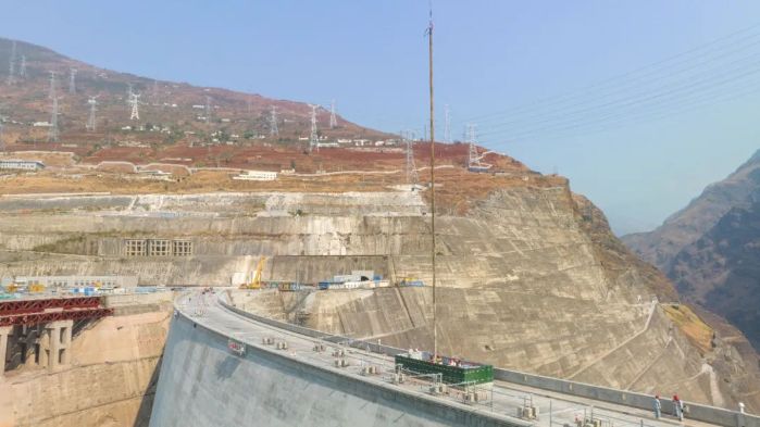 白鶴灘水電站工程大壩為300米級特高混凝土雙曲拱壩,壩體混凝土總方量803萬立方米,“體積”超過3個胡夫金字塔,全壩均使用低熱水泥混凝土澆筑。
