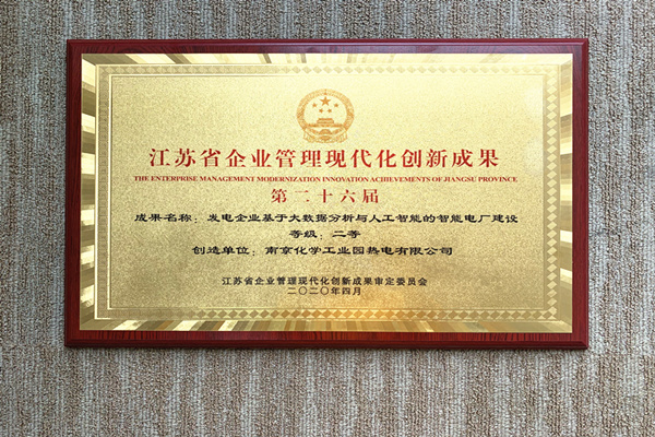 省國(guó)資委企業(yè)改革發(fā)展處處長(zhǎng)劉偉于會(huì)上發(fā)布第二十六屆江蘇省企業(yè)管理現(xiàn)代化創(chuàng)新成果并進(jìn)行頒發(fā),其中一等42項(xiàng)、二等67項(xiàng),公司“發(fā)電企業(yè)基于大數(shù)據(jù)分析與人工智能的智能電廠建設(shè)”榮獲江蘇省企業(yè)管理現(xiàn)代化二等創(chuàng)新成果。