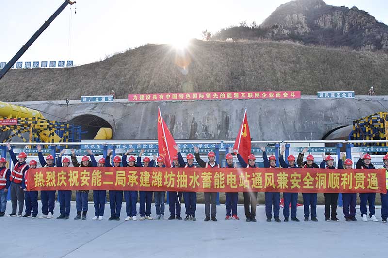 山東濰坊抽水蓄能電站位于山東省濰坊市臨朐縣境內(nèi),總裝機容量120萬千萬,裝設(shè)4臺單機容量為30萬千萬的立軸單級混流可逆式水泵水輪機,額定水頭326米,建成后在山東電網(wǎng)系統(tǒng)中將承擔(dān)調(diào)峰、填谷、調(diào)相、緊急事故備用等任務(wù)。通風(fēng)兼安全洞全長1059.4米,2021年4月開始施工,251個日日夜夜,全體參建員工始終發(fā)揚“鐵心向黨、鐵肩擔(dān)當(dāng)、鐵膽攻堅、鐵骨奮斗”的水電鐵軍精神,努力克服疫情防控、環(huán)保管控等不利影響,解決圍巖15次變化、地下水豐富等復(fù)雜難題,持續(xù)進行不間斷高強度爆破開挖作業(yè),最終圓滿完成任務(wù)。