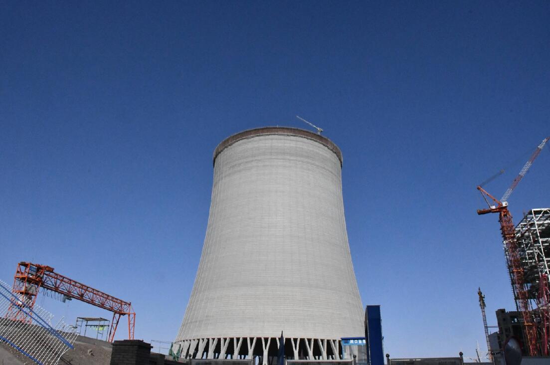 甘肅電投常樂電廠項目超大型自然通風(fēng)間接空冷冷卻塔設(shè)計屬國內(nèi)一流。四號塔身零米直徑為163米,塔高215米,進(jìn)風(fēng)口高度29米,進(jìn)風(fēng)口直徑143.8米。由基礎(chǔ)、X柱、環(huán)梁、塔筒等部分組成,于2021年7月上旬開工,X柱采用清水混凝土澆筑,整體澆筑共使用87753立方米混凝土,到頂后的間冷塔筒壁內(nèi)實外光、曲線流暢、模板接茬平整。塔筒為雙曲線形現(xiàn)澆鋼筋混凝土殼體結(jié)構(gòu),這種設(shè)計有效解決了瓜州縣大風(fēng)地區(qū)間冷塔設(shè)計和運(yùn)行等技術(shù)難題。