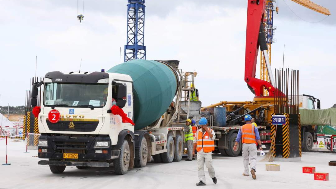 8月15日,1號機組現(xiàn)場機器轟鳴、吊臂起降、一片繁忙。15時整,隨著一聲令下,混凝土澆筑正式啟動,1號常規(guī)島順利實現(xiàn)第一罐混凝土澆筑(FCD)目標。