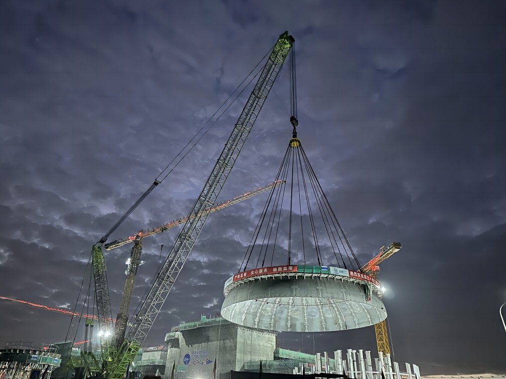 11月3日,中核集團(tuán)宣布海南多用途模塊式小型堆科技示范工程“玲龍一號(hào)”鋼制安全殼頂封頭順利吊裝就位,標(biāo)志著全球首個(gè)開(kāi)工建造的模塊式小型示范堆的關(guān)鍵結(jié)構(gòu)封頂,全面進(jìn)入內(nèi)部安裝高峰期。這次吊裝完成了鋼制安全殼形成整體的最后一步,為已經(jīng)先期引入的反應(yīng)堆核心模塊、堆內(nèi)構(gòu)件、穩(wěn)壓器等重要設(shè)備提供了更加完整、可靠的保護(hù)屏障。
