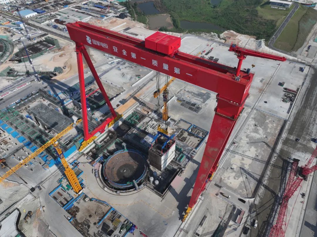 10月9日9時59分,全球核電建設(shè)領(lǐng)域首個大型龍門吊——國家電投廉江核電1600噸龍門吊順利完成吊裝工作,廉江核電一期工程2號機組千噸級模塊CA20模塊一次精準就位,這對于打造核能領(lǐng)域新質(zhì)生產(chǎn)力有重要意義。