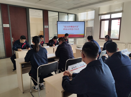 儀式上,6對師徒簽訂“師帶徒”協議書,徒弟向師傅敬“拜師茶”,師傅向徒弟回贈鋼筆,鼓勵新入職員工要秉承“甘于奉獻 追求卓越”的企業(yè)精神,堅定信念,積極學習,快速適應崗位職責。