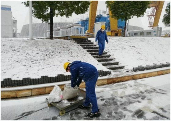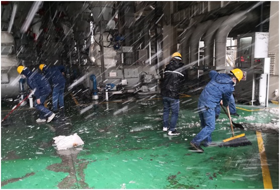早在幾天前,一收到市氣象局發(fā)布的大雪預(yù)警信息后,楊坤就帶領(lǐng)著六值班組成員進行相關(guān)重點區(qū)域的學(xué)習(xí)和操作。工作開始前,楊坤再三叮囑值內(nèi)成員要采取好防護保暖措施,預(yù)防風(fēng)寒感冒。大雪襲來后,楊坤第一時間帶領(lǐng)值內(nèi)成員在部門統(tǒng)籌安排下,前往生產(chǎn)現(xiàn)場清雪、撒鹽、鋪設(shè)防滑袋等相關(guān)安全保障措施。風(fēng)雪中,楊坤拿來了幾個大鐵鍬,在鍋爐12米的給煤機平臺上將凍上的冰面一片片敲裂,然后再順著雪一道鏟到通道的兩旁,最后撒上鹽,在相關(guān)區(qū)域鋪上麻袋。有人問他怎么做得這么熟練,他笑著說自己打小在東北的家鄉(xiāng)就干這些事。