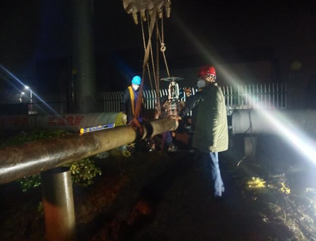 “方區(qū)長(zhǎng)要求務(wù)必連夜搶修,確保盡快投產(chǎn)!現(xiàn)在這個(gè)非常時(shí)期,雙匯食品復(fù)產(chǎn)是重要的民生工程......”“不管風(fēng)雪多大,保證完成任務(wù)!”向當(dāng)?shù)卣畢R報(bào)得到反饋后,華電蕪湖公司迅速成立“攻堅(jiān)隊(duì)”,按照一級(jí)搶險(xiǎn)任務(wù)實(shí)施進(jìn)行:確定“改道引管供汽”方案、編制《廠外供熱至雙匯地埋管道消缺方案及安全技術(shù)措施》、組織施工人員及物料到位,連夜施工連夜開工,并由總工、副總工親自現(xiàn)場(chǎng)督陣,全力以赴推進(jìn)供暖缺陷搶修任務(wù)。
