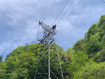 此次維保檢修的二郎壩發(fā)電35kV臥天架空輸配電線路全長約18公里,共有桿塔43級,其中鐵塔22級,混凝土水泥桿塔21級,均為山區(qū)架空線路,且位于陜南山區(qū),叢林密布、道路濕滑,檢修維保工作難度大。施工前,電力運(yùn)營提前抽調(diào)專業(yè)技術(shù)人員對現(xiàn)場情況進(jìn)行實(shí)地勘察,就天氣情況、檢修方案、危險(xiǎn)點(diǎn)進(jìn)行分析討論,梳理設(shè)備缺陷隱患,并制定了完善的檢修方案及“三措兩案”。檢修人員披荊斬棘、逐桿逐級檢修,共計(jì)消除桿塔金具缺陷339條、更換破損絕緣子5片、更換避雷器1組,有效地提高了輸電線路設(shè)備的健康和運(yùn)行水平,以優(yōu)質(zhì)、高效的檢修成果確保了業(yè)主方輸電線路安全可靠運(yùn)行。