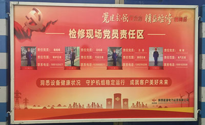 電力運(yùn)營(yíng)發(fā)布了等級(jí)檢修現(xiàn)場(chǎng)標(biāo)準(zhǔn)化布置指引,指導(dǎo)各“作戰(zhàn)”單元統(tǒng)一規(guī)范設(shè)置黨建及企業(yè)文化展板,助力檢修現(xiàn)場(chǎng)標(biāo)準(zhǔn)化、流程化、目視化管理。黨員突擊隊(duì)、退役軍人突擊隊(duì)、青年突擊隊(duì)在急難險(xiǎn)重任務(wù)中沖在先、干在前,相繼完成發(fā)電機(jī)冷卻器回裝、吸收塔內(nèi)漿液清理、輔汽改造等任務(wù),為機(jī)組大修注入“紅色力量”。
