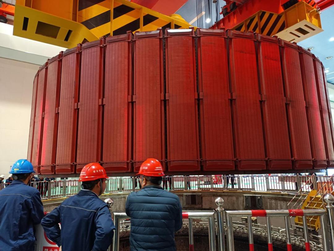 對(duì)于水輪發(fā)電機(jī)組來(lái)說(shuō),發(fā)電機(jī)轉(zhuǎn)子相當(dāng)于它的心臟,是整個(gè)水輪發(fā)電機(jī)組最核心的部件。#3發(fā)電機(jī)轉(zhuǎn)子直徑約13米,高約3.8米,重達(dá)1300余噸。吊裝作業(yè)的精度要求高,難度大,需要多專業(yè)精益化的相互配合。