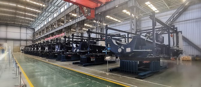 在大規(guī)模生產(chǎn)工作中,有效拓寬生產(chǎn)空間、采用精細(xì)化車間定置管理將極大提升生產(chǎn)效率。生產(chǎn)團(tuán)隊(duì)根據(jù)物資到貨情況及生產(chǎn)進(jìn)程,合理規(guī)劃空間布局,提高空間利用率的同時(shí)兼顧后續(xù)工序便利性。充分利用外場地及庫房空間,巧思布置,使得大批量存放半成品機(jī)組得以實(shí)現(xiàn)。整齊劃一的機(jī)組,形成了華銳風(fēng)電一道最美的風(fēng)景線。