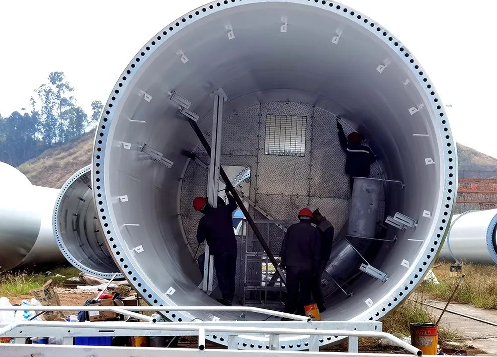 在云南藍天重工有限公司,工人們正在進行風力發電機塔筒內附件安裝。“我們今年新增了一條生產線,并于7月正式投產,可滿足單段100噸塔筒生產要求。今年,除了華寧,我們還接到了曲靖、文山等地的訂單。”該公司技術副總經理周鵬翔說,“現在全國風電產業趨勢向好,帶來了良好的市場前景,也帶來了更大的市場競爭。接下來,我們將充分發揮公司生產規模大、輻射面積廣的優勢,不斷提升產品競爭力,逐步擴大生產規模。”