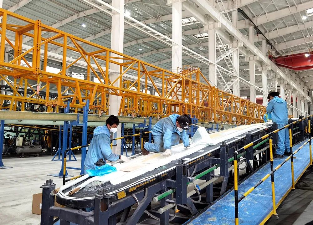 12月2日,在中復連眾(玉溪)復合材料有限責任公司新建的9400平方米標準廠房內,工人們正忙著在風力發電機葉片生產模具上鋪設玻璃纖維布。“隨著政策和市場需求的變化,公司于今年4月完成廠房建設,并于9月實現4條生產線的建成投產,主要生產93米長的葉片。公司今年預計可實現產值2.6億元。”該公司行政人事部經理關健剛介紹,隨著2020年云南省出臺適宜地區適度開發利用新能源規劃,明確建設800萬千瓦風電項目的目標任務后,全省新開發的風電項目有所增加,再加上之前投入使用的葉片進入升級換代期,新開發市場與升級換代市場的雙重疊加,形成了較好的市場前景,公司對風電裝備制造業未來的發展充滿信心。