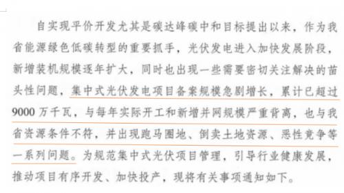 為了證明這一傳聞的真實(shí)性,一些媒體還提到了2022年發(fā)布的文件《關(guān)于規(guī)范集中式光伏電站項(xiàng)目管理有關(guān)事項(xiàng)的通知》。該通知嚴(yán)厲指出,集中式光伏發(fā)電項(xiàng)目備案規(guī)模迅速增長,已經(jīng)超過9000萬千瓦,與實(shí)際開工和新增并網(wǎng)規(guī)模嚴(yán)重不符,也與廣東省的資源條件不匹配,出現(xiàn)了跑馬圈地、倒賣土地資源、惡性競爭等一系列問題。