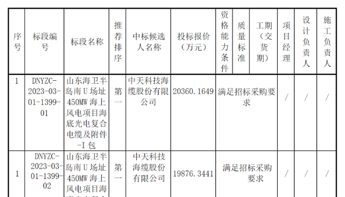 7月14日,國家電投電子商務平臺發(fā)布《國家電力投資集團有限公司二〇二三年度第十七批集中招標(山東分公司海衛(wèi)半島南 U場址450MW海上風電項目海底光電復合電纜及附件)中標候選人公示》的公告。