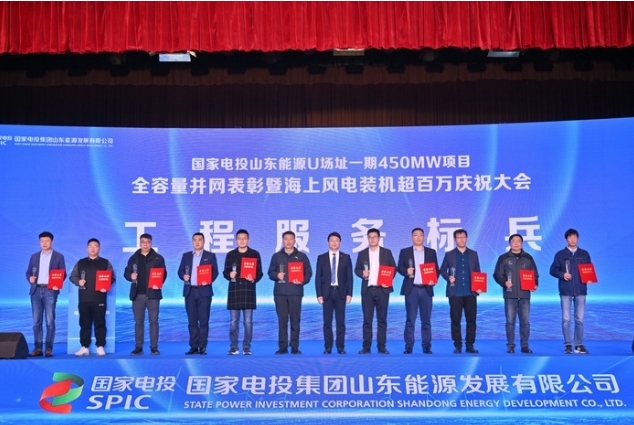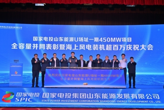 11月28日,國家電投山東能源U1場址一期450兆瓦海上風(fēng)電項目全容量并網(wǎng)表彰暨海上風(fēng)電裝機超百萬慶祝大會舉行。新黃河記者獲悉,國家電投山東能源有限公司“百萬千瓦級海上風(fēng)電基地”建成,這是國家電投在魯首個百萬千瓦級海上風(fēng)電基地。