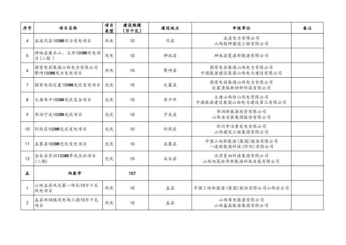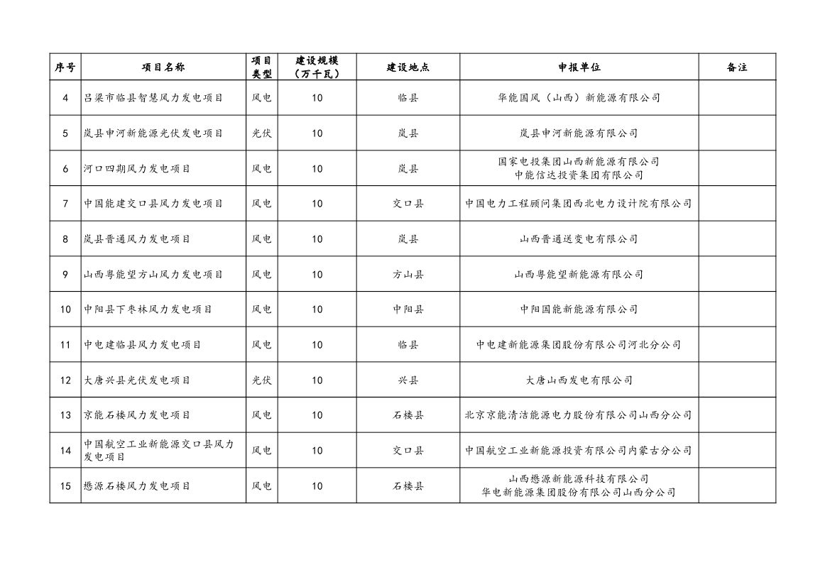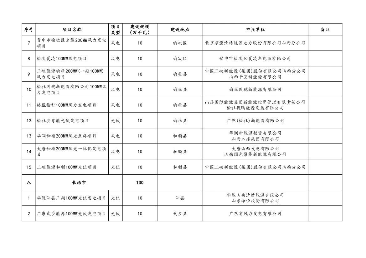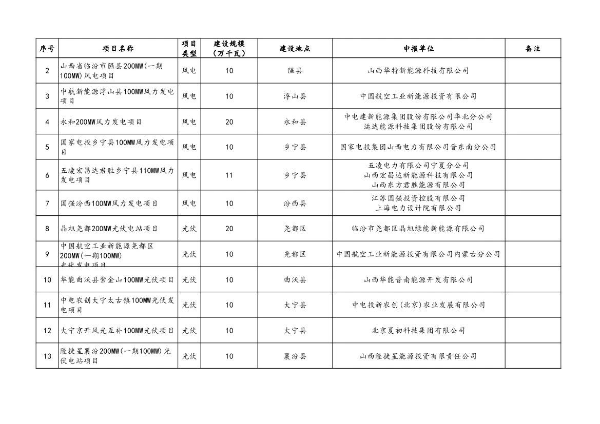 附件:山西省2023年風電、光伏發(fā)電保障性并網(wǎng)項目清單