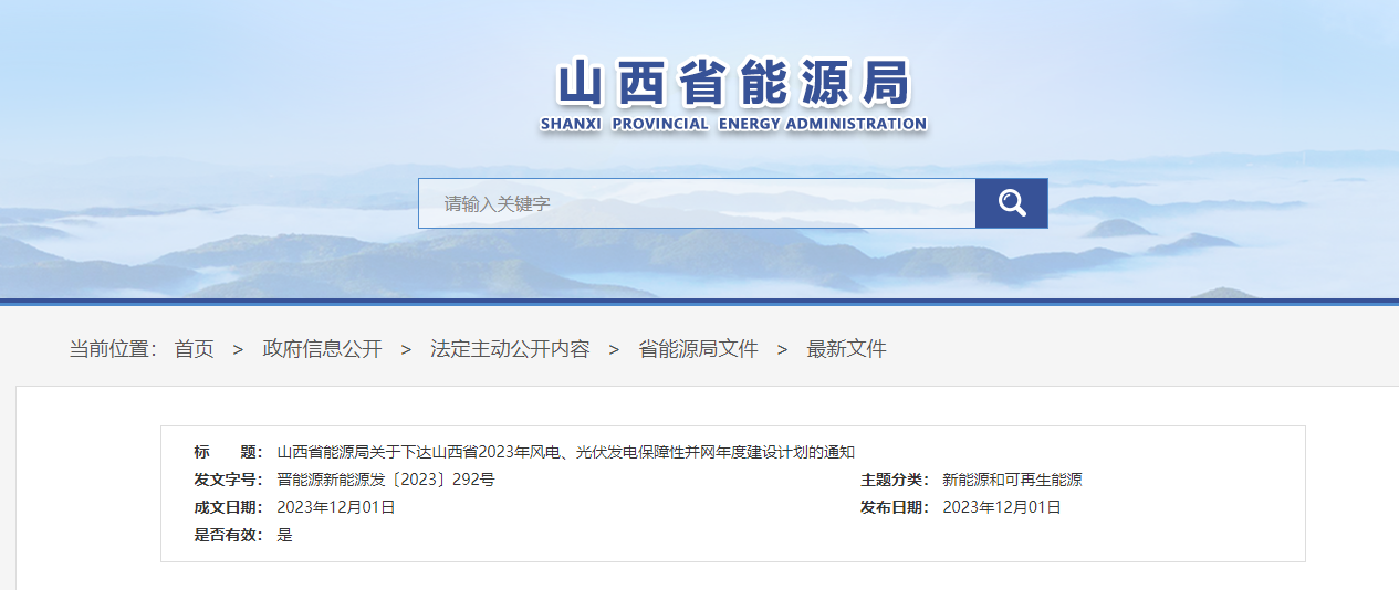 山西省能源局關于下達山西省2023年風電、光伏發(fā)電保障性并網(wǎng)年度建設計劃的通知