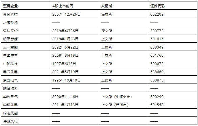圖為中國風(fēng)電整機(jī)商A股上市情況