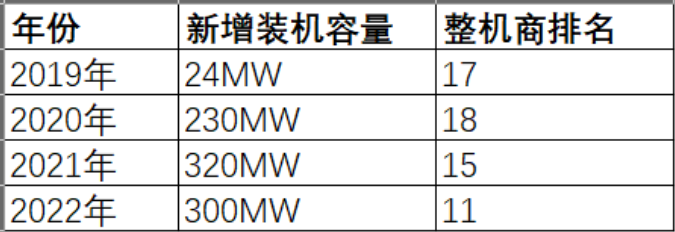 在華儀電氣正處在資本市場的水深火熱之時(shí),2020年退市并逐漸卸掉包袱的華銳風(fēng)電,近年來卻表現(xiàn)出強(qiáng)勁的增長勢頭。2019-2022年,華銳風(fēng)電新增裝機(jī)排名不斷向上提升。