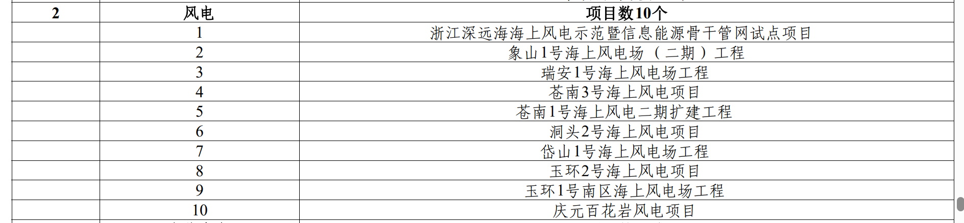 《項(xiàng)目表》顯示,2024年浙江省重大建設(shè)項(xiàng)目包含10個(gè)風(fēng)電項(xiàng)目,其中海上風(fēng)電項(xiàng)目8個(gè),即象山1號海上風(fēng)電場(二期)工程、瑞安1號海上風(fēng)電場工程、蒼南3號海上風(fēng)電項(xiàng)目、蒼南1號海上風(fēng)電二期擴(kuò)建工程、洞頭2號海上風(fēng)電項(xiàng)目、岱山1號海上風(fēng)電場工程、玉環(huán)2號海上風(fēng)電項(xiàng)目、玉環(huán)1號南區(qū)海上風(fēng)電場工程,海上風(fēng)電項(xiàng)目總裝機(jī)容量達(dá)2893MW。